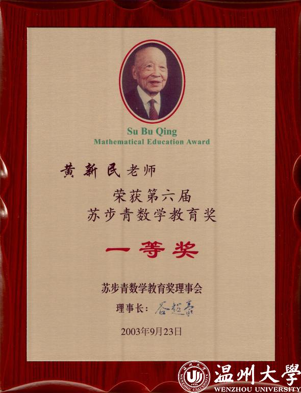 來源: 發布時間:2020-05-06 瀏覽次數:次黃新民,溫州大學數理學院1982屆數學校友,男,漢族,1957年2月出生,原溫州市教育教學研究院初中數學教研員,浙江省數學特級教師。浙師大數學教育碩士生導師,享受教授級待遇的中學高級教師,溫州市專業技術拔尖人才,市“數學家搖籃工程”理事會副理事長。2003年榮獲全國第六屆“蘇步青數學教育獎”一等獎。2014年擔任全國第十屆“蘇步青數學教育獎”評委工作。出版了《整點多邊形存在性問題》、《初中數學課堂創新教學的理論與實踐》等5部數學教學專著,另有五十多篇論文在省級以上的刊物上發表。參加了浙教版初中數學課本編寫工作及全國各版本初中數學教材審定工作。曾先后100多次在省、市及全國數學教學研討會上做專題講座和學術報告。擔任溫州市中考數學命題組長工作期間,溫州數學中考試卷連續九年被評為省一等獎(其中七年獲第一名)。